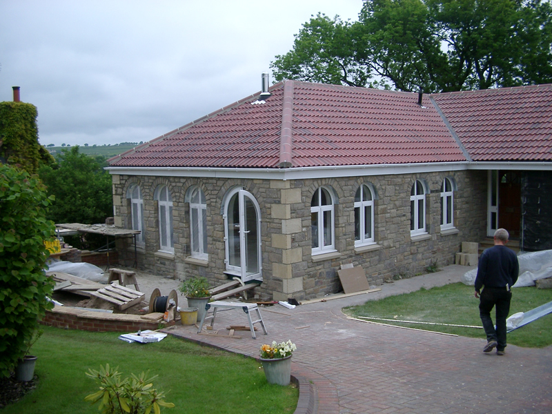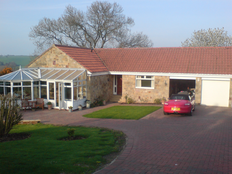 This 1930's bungalow was showing it's age but our client contacted us with some great ideas. We ditched the conservatory and created a flowing 'hip' end to the existing gable creating a spectacular one off kitchen extension. Some detailed stonework and replacing the roof tiles this dwelling is now a real eyecatcher in the village